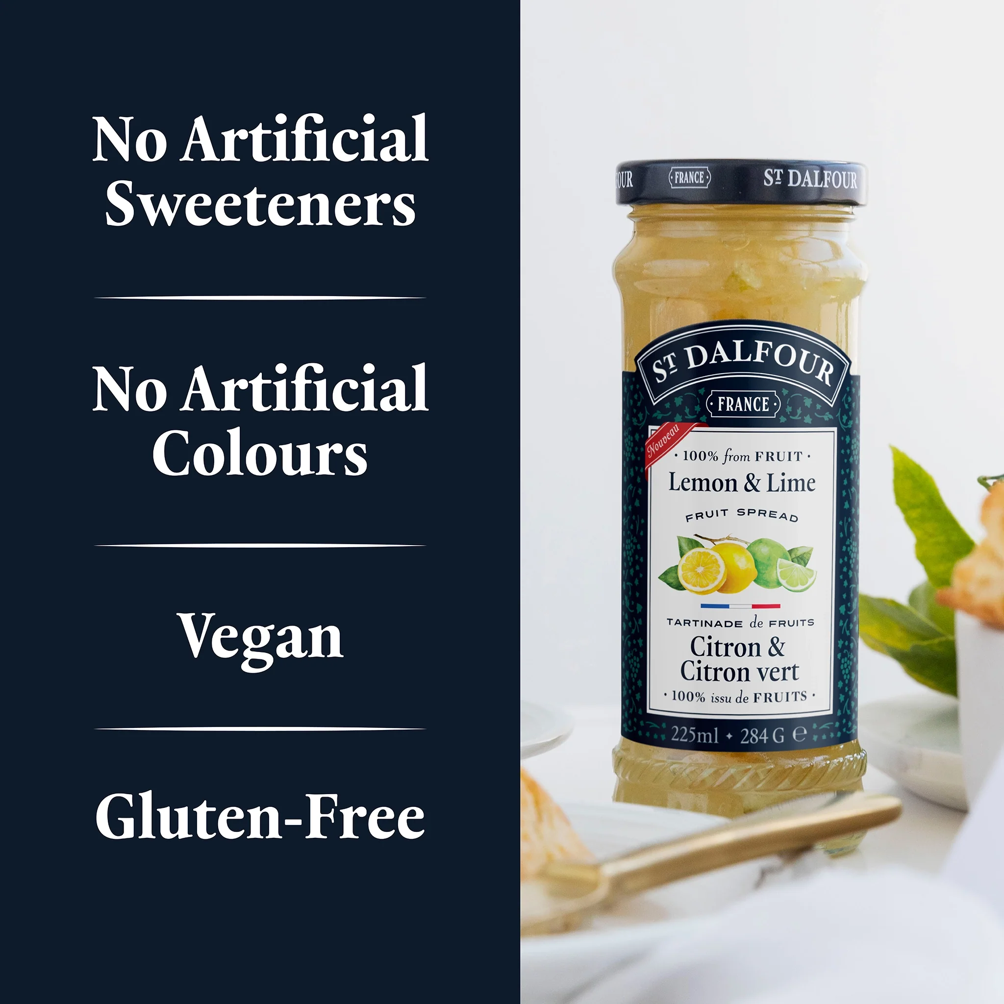 Tangy citrus fruit spread with pieces of lemon and lime peel.